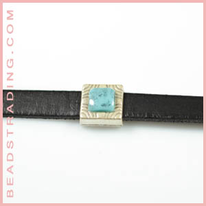 Entrepieza cuadrado rayado turqueza 10x2mm x25pz
